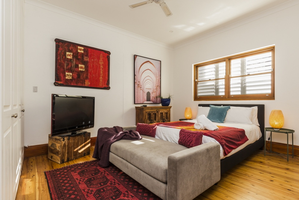 This newly renovated, fully furnished, Moroccan-inspired home marries exotic decor with modern amenities and a true Bondi beach lifestyle. Park your surfboards at this bright open 3 bedroom home surrounded by a lush tropical garden and the smell of the sea. The place has high ceilings, polished floor boards throughout, large queen-sized bedrooms with floor to ceiling built in wardrobes, reverse cycle air-conditioning in most rooms and fans throughout. It boasts 2 bathrooms and 2 chill-out spaces for entertaining, The house is situated less than 5 minutes walk to Sydney's world-famous Bondi Beach, 3 minutes to intimate Tamarama beach, shops, eateries, and public transport, with off-street parking and garage negotiable. Major shopping/transport hub Bondi Junction is a 5 min bus trip.