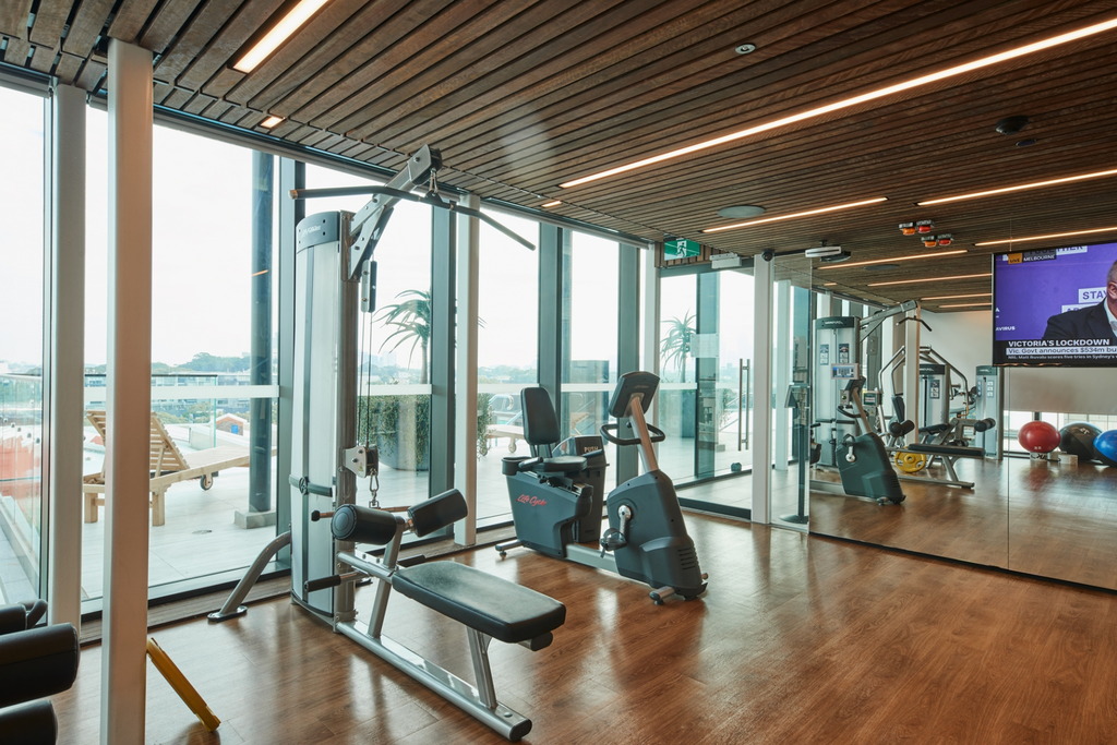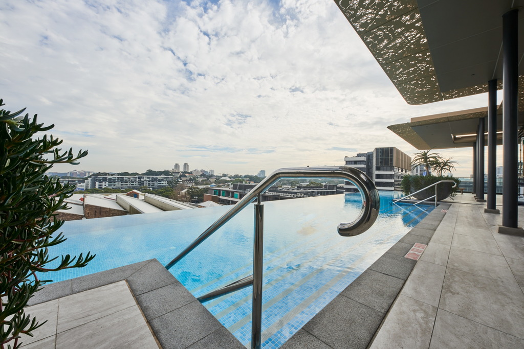 Rooftop infinity pool and spa with views of Sydney CBD Tranquil internal lagoon and bamboo walkway Cantilevered gym with state-of-the-art equipment Rooftop lounge with views of Sydney CBD and outdoor cinema Function room with kitchen Music room with baby grand piano Exciting array of shopping and dining on ground floor