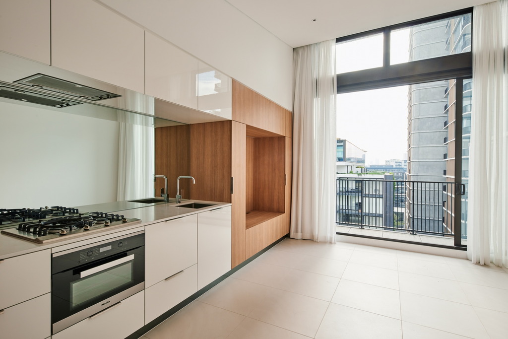 A luxurious new north facing one bedroom apartment, situated on the top floor of building A with soaring 4 metre ceilings and city views.